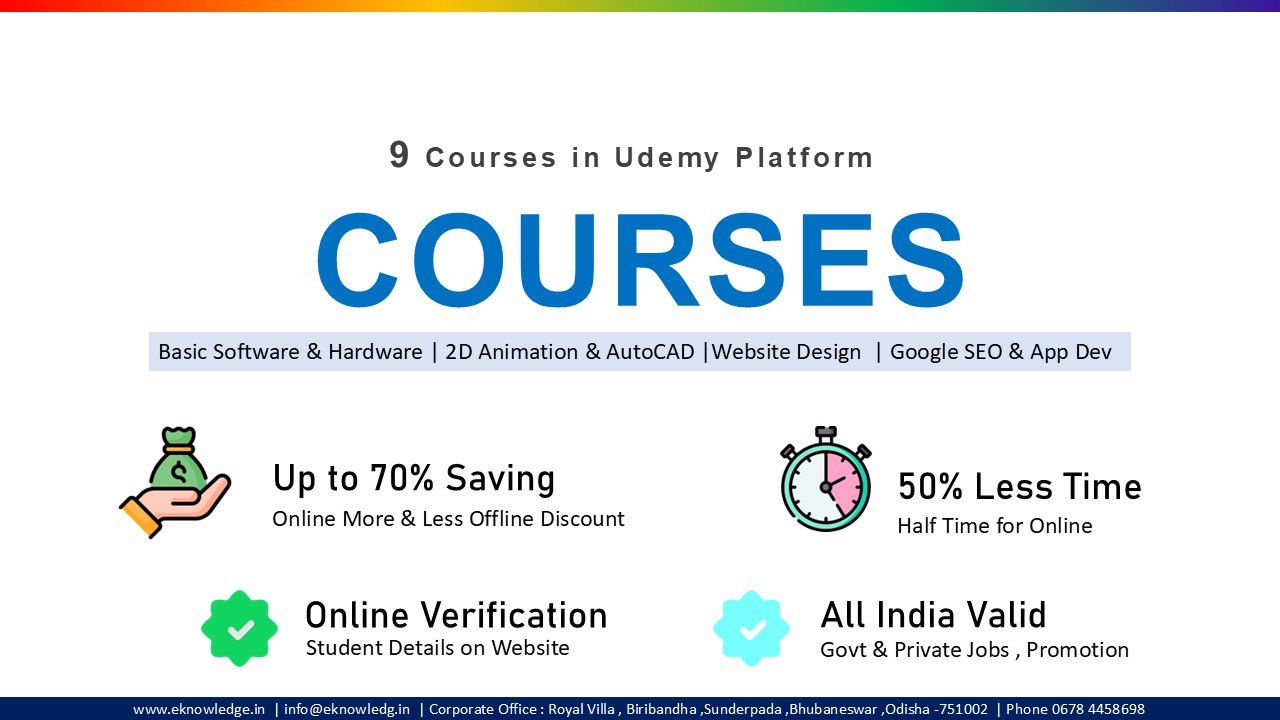 We are Proving Online Professional Courses Like Fundamental ,Microsoft Office 365,Website Design,Graphic Design,AutoCAD ,Language Typing ,Tally ERP,PGDCA ,DCA ,2D Animation & Awareness Like Anger Managment ,Memory Development etc.